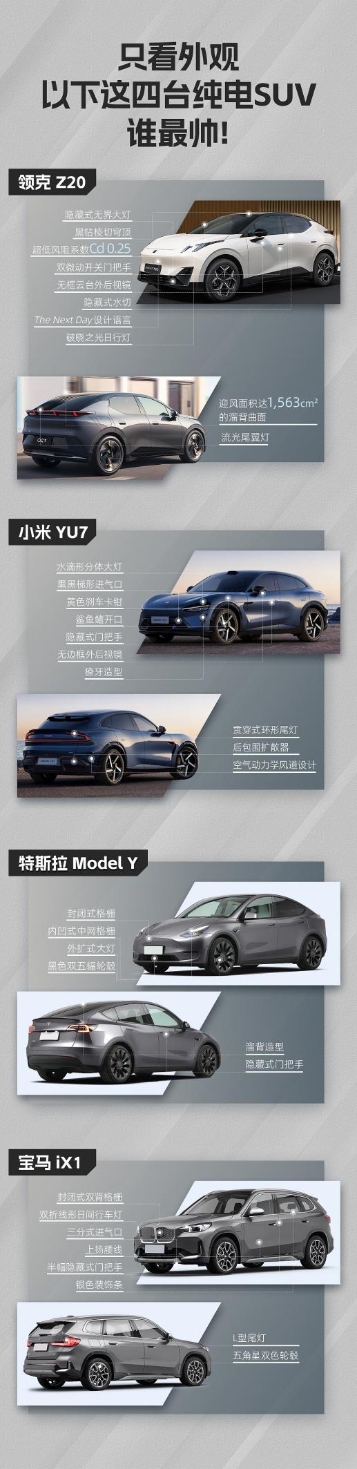 当下汽车市场中,领克Z20、Model Y、宝马iX1和小米YU7备受年轻消费者关注,它们皆拥有超高的颜值。领克Z20以The Next Day设计语言彰显独特魅力,Model Y秉持极简主义风格,宝马iX1传承经典双肾造型,小米YU7则带有国外超豪华品牌车型的韵味,每一款车都宛如时尚界的宠儿,单独呈现时都似一件精致的时尚单品。