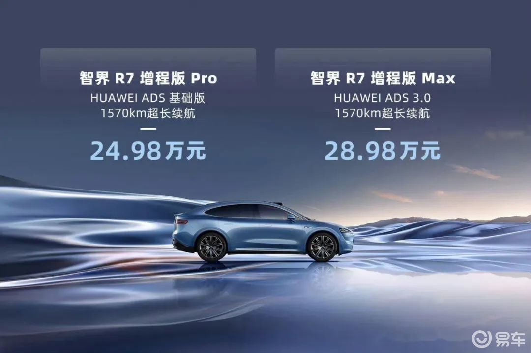12月19日,智界R7增程版上市,两个版本,售价24.98万元起。