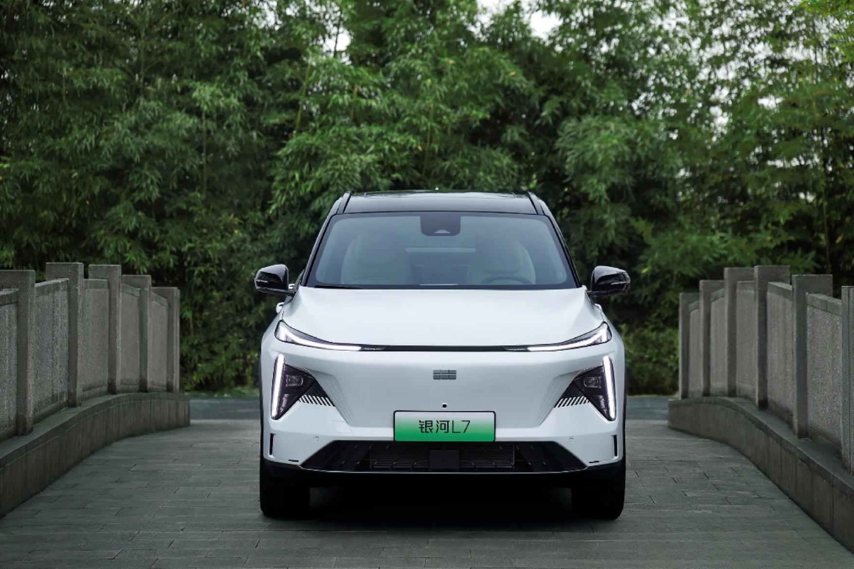 相比之下,银河L7在外观设计上则更加注重未来科技与动感美学的融合。其车身尺寸为长4700毫米、宽1890毫米、高1685毫米,略小于捷途山海L7,整体视觉效果更加紧凑且富有张力。车头部分,银河L7采用了分体式大灯设计,上方的细长LED日间行车灯与贯穿式前格栅融为一体,下方则是造型犀利的远近光灯组,这样的设计不仅增强了前脸的视觉冲击力,更展现出了银河L7对未来科技的独特诠释。车身侧面,银河L7的腰线设计更为流畅且富有变化,与车门下方的内凹线条相呼应,营造出一种光影交错的动态美感。整体而言,银河L7的外观设计更加年轻、时尚,更适合追求个性与潮流的年轻消费者。