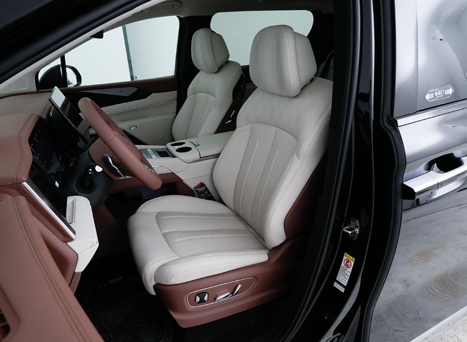 腾势D9 DM-i的座椅布局与前款保持一致,但在功能配置上有所不同。虽然取消了车内香氛装置,但新增了帝瓦雷扬声器,使得听觉体验得到了进一步提升。