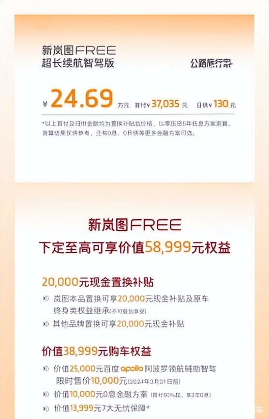 【版权声明】车平台提醒您:请在浏览本网站关于【岚图FREE开年速推2万权益优惠销量暴涨,08难道不慌】文章时,请您务必阅读并理解本声明。本站部分内容以及图片来源于商家投稿和网络转载,如网站发布的有关的信息侵犯到您的权益,请及时与我们取得联系,我们及时删除处理。