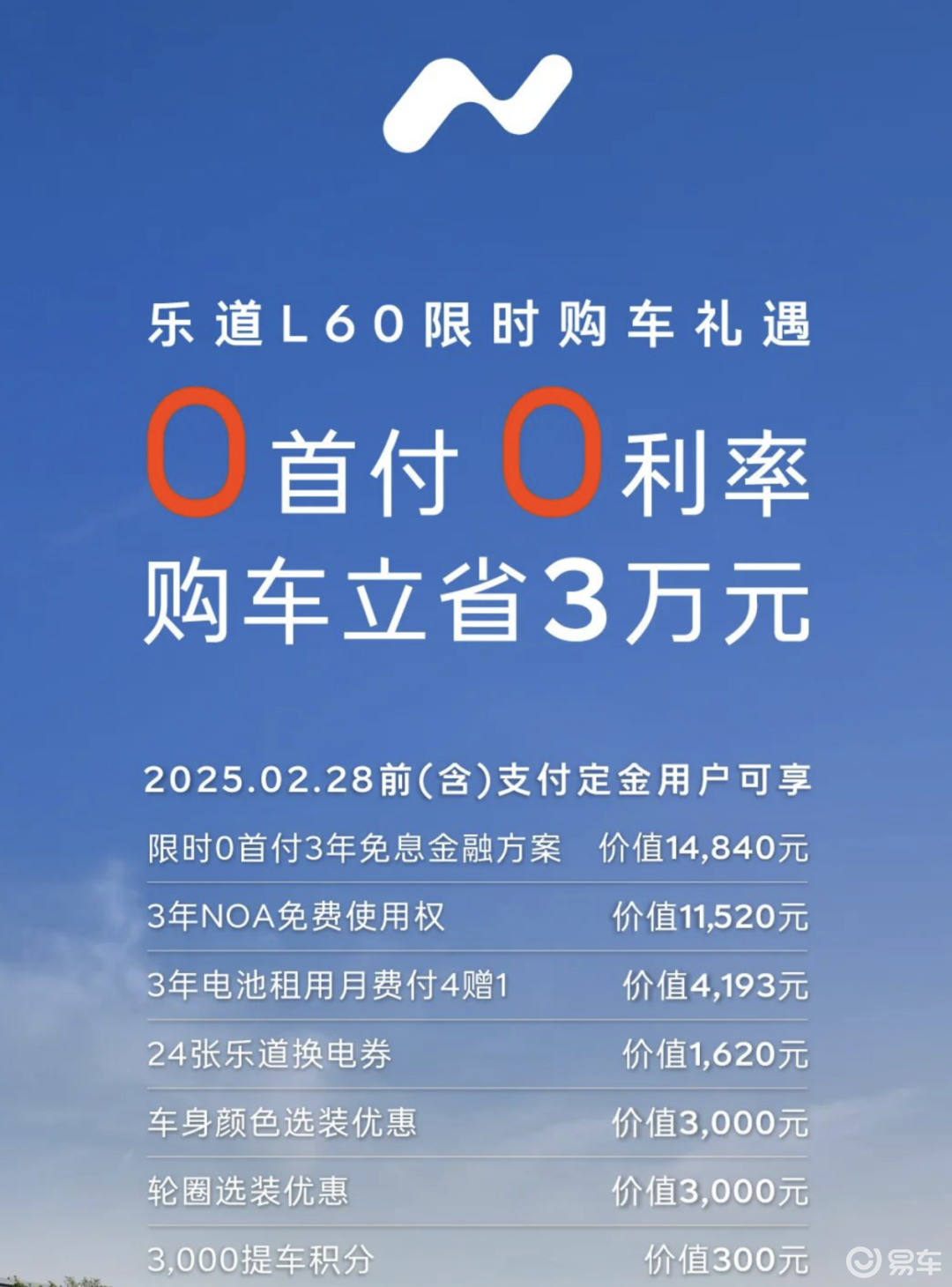 同样的,本月乐道也为L60推出了“3年0首付0利率”的方案。