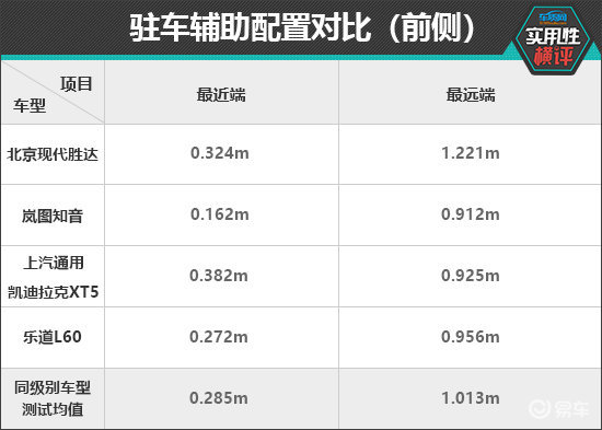 驻车辅助配置方面,在前方驻车雷达测试中,北京现代胜达的探测能力最强,最远探测距离达到1.221m。在持续蜂鸣阶段,乐道L60的表现好于其他三款车型,测试成绩与同级别车型测试均值比较接近。