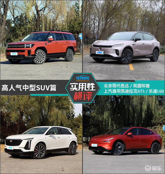 随着购买力提升,可以兼顾乘坐空间、动态性能、配置水平和性价比的中型SUV已经成为很多家庭的首选车型。在往期的“日常实用性测试”中,我们曾测试过不少中型SUV,此次我们就将北京现代胜达、岚图知音、上汽通用凯迪拉克XT5和乐道L60汇集到一起,通过测试成绩的横向对比,来看看哪款车型日常实用性表现更为全面。