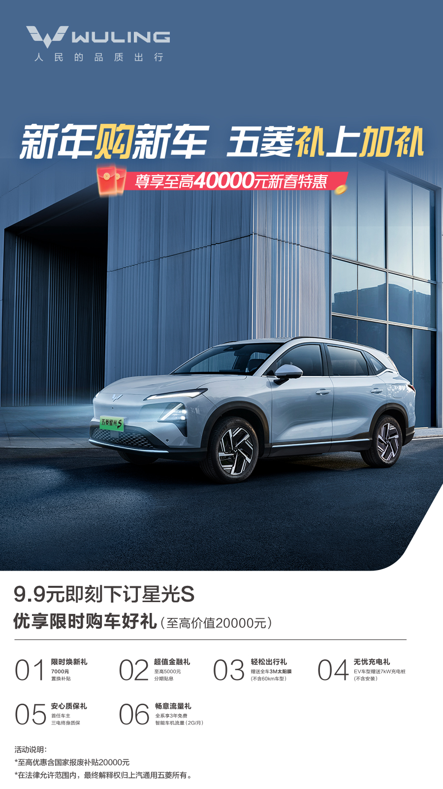 五菱星光 S 凭借强大的综合实力、丰厚的购车福利以及优质的服务保障,成为当下购车的不错选择。此次购车权益截止 2 月 28 日,如果你近期有购车计划,不妨考虑一下五菱星光 S,前往 4S 店亲身感受它的魅力,相信它会给你带来意想不到的惊喜,开启你的全新出行生活。