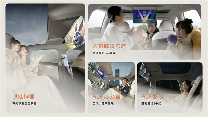 “MPV级大彩电”IM MAX第二代智慧屏全系上车是“升舱”的一大亮点,与LS6独有的“零重力、贵妃椅、大床房”三躺模式绝妙搭配,拓展出百变空间,坐着躺着观影都舒服,实现“移动头等舱”的娱乐自由。同级最大17.3英寸3K高清屏幕,联动全车21个扬声器打造的WANOS 7.1.4 全景声场,打造剧院般沉浸视听享受。作为全能座舱,它既是带娃神器,又可以化身双人浪漫的私享影院;露营时,K歌房或Switch游戏空间自如切换,快乐翻倍;甚至紧急会议时还能投屏移动办公,每一位成员的需求都能得到充分满足。