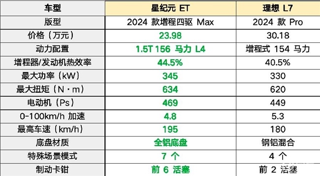 增程续航:星纪元ET的1500km VS 理想L7的1360km