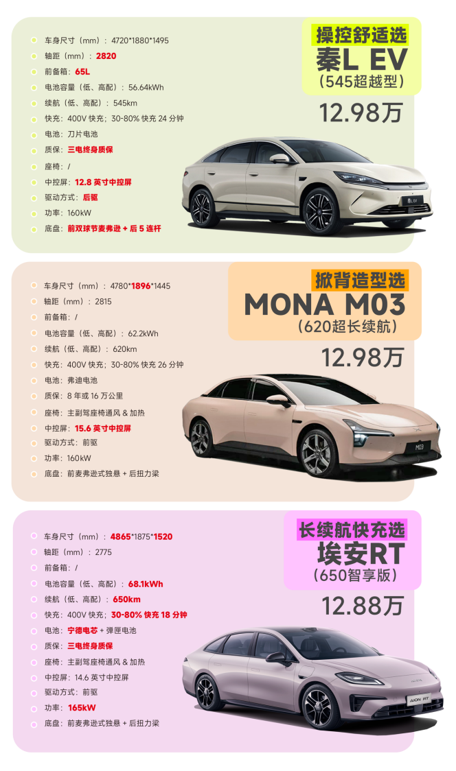 (原标题:埃安RT、MONA、秦L,EV谁能拿下年轻家庭的心)
