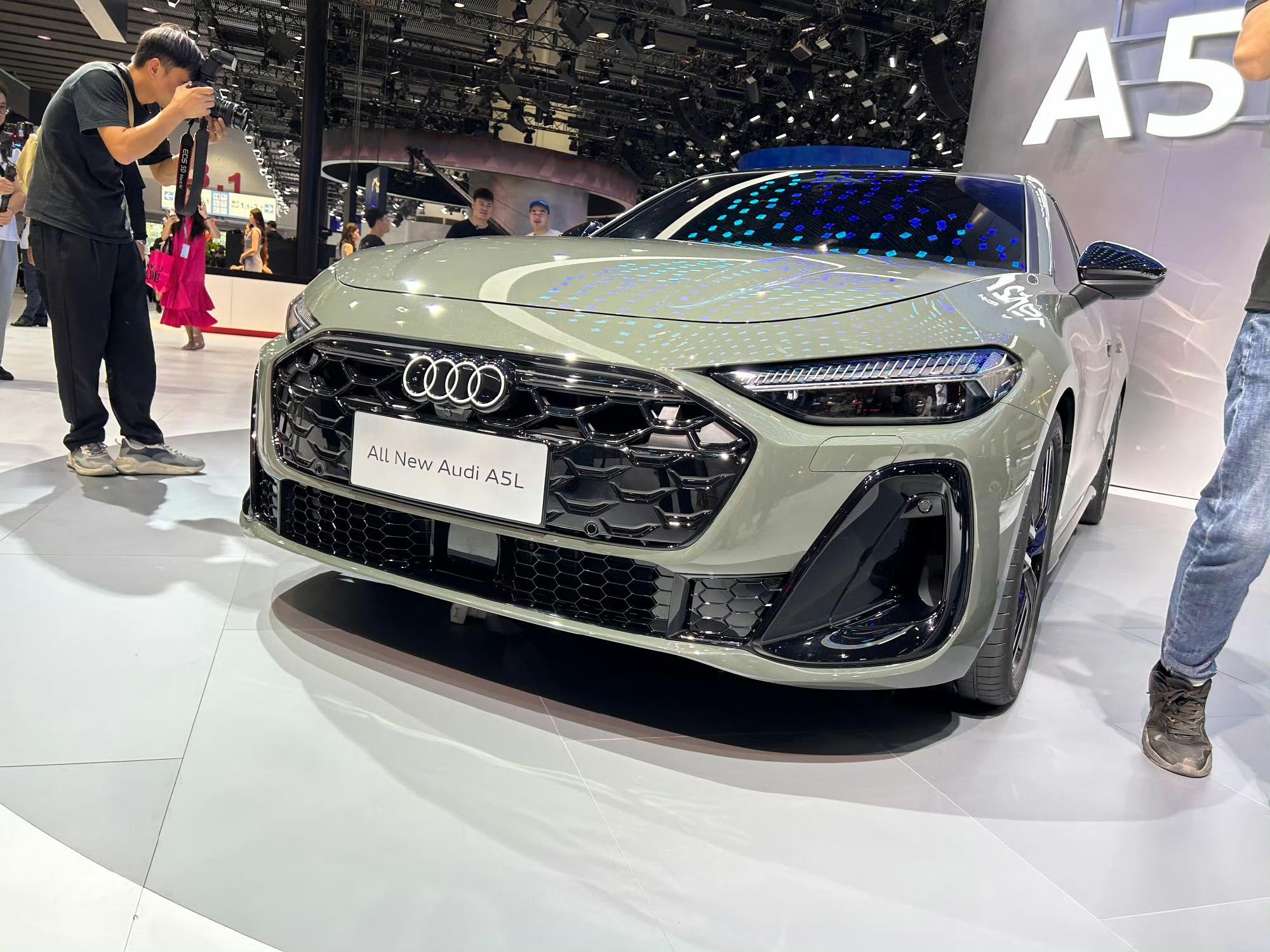从外观来看,一汽奥迪A5L采用了最新的家族设计元素,外观设计极具运动张力,车身线条刚硬且富有力量感。其标志性的六边形进气格栅,尺寸宽大,内部采用熏黑蜂窝状结构,搭配犀利且极具科技感的矩阵式LED大灯,眼神锐利,仿佛随时准备出击。流畅的半隐藏门把手设计搭配上扬的腰线,营造出一种向前俯冲的姿态,运动气息十足。车尾的贯穿式OLED尾灯,科技感爆棚,还支持多种灯光交互,并能根据驾驶模式调整灯光效果。第二代数字OLED尾灯设计新颖,点亮后辨识度极高,双边共四出的排气布局更是强化了其运动属性。