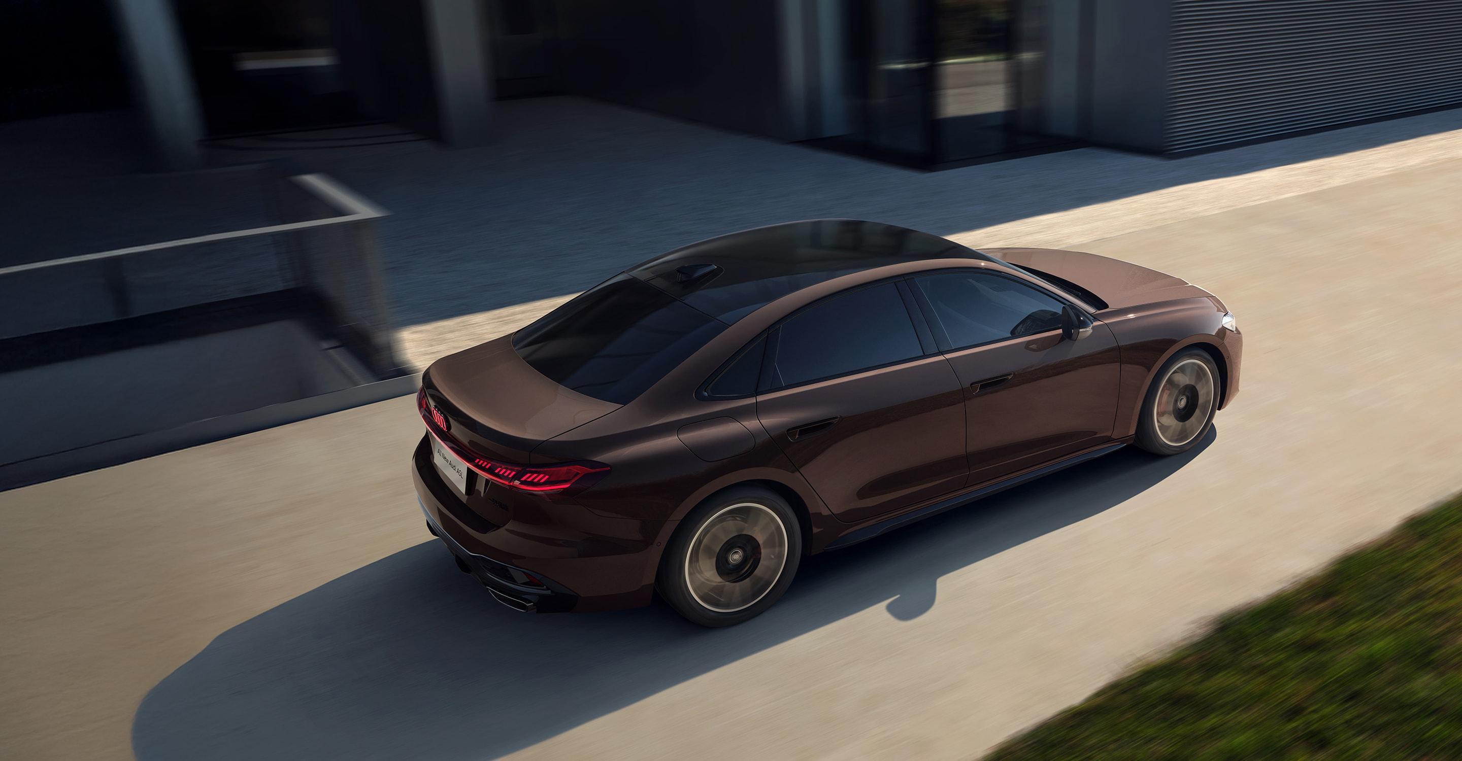 一汽奥迪A5L在外观设计上极具冲击力与辨识度。从前方来看,其前脸采用标志性的大尺寸六边形进气格栅,内部以精致的镀铬饰条进行点缀,搭配犀利的矩阵式LED大灯组,眼神锐利且富有科技感,点亮后效果惊艳。从侧面来看,车身线条流畅且富有张力,溜背式造型优雅动感,从B柱开始缓缓下滑的车顶线条,营造出一种蓄势待发的姿态。车侧腰线刚劲有力,从前翼子板一直延伸至尾灯,拉伸了整车的视觉长度。车尾部分,贯穿式的镀铬饰条与尾灯相连,拓宽了尾部的横向视觉效果,双边共四出的排气布局,进一步强化了其运动属性。
