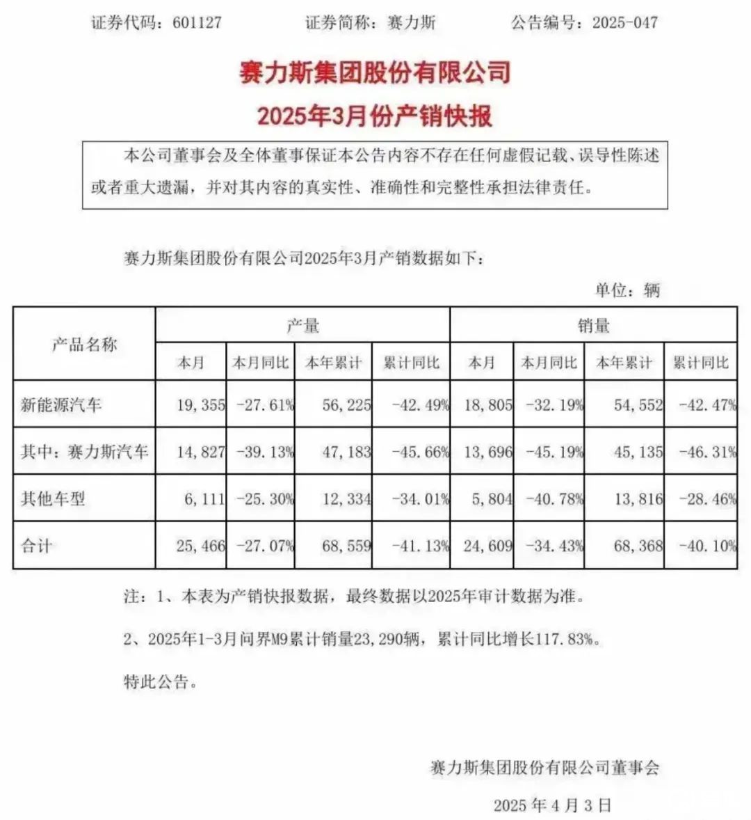 这一点,在其他“三界”身上也有体现。2025年1-3月,智界零售量呈环比下滑趋势,分别为13000辆、9580辆、9482辆;享界S9单月零售量则直接跌至千辆以下。