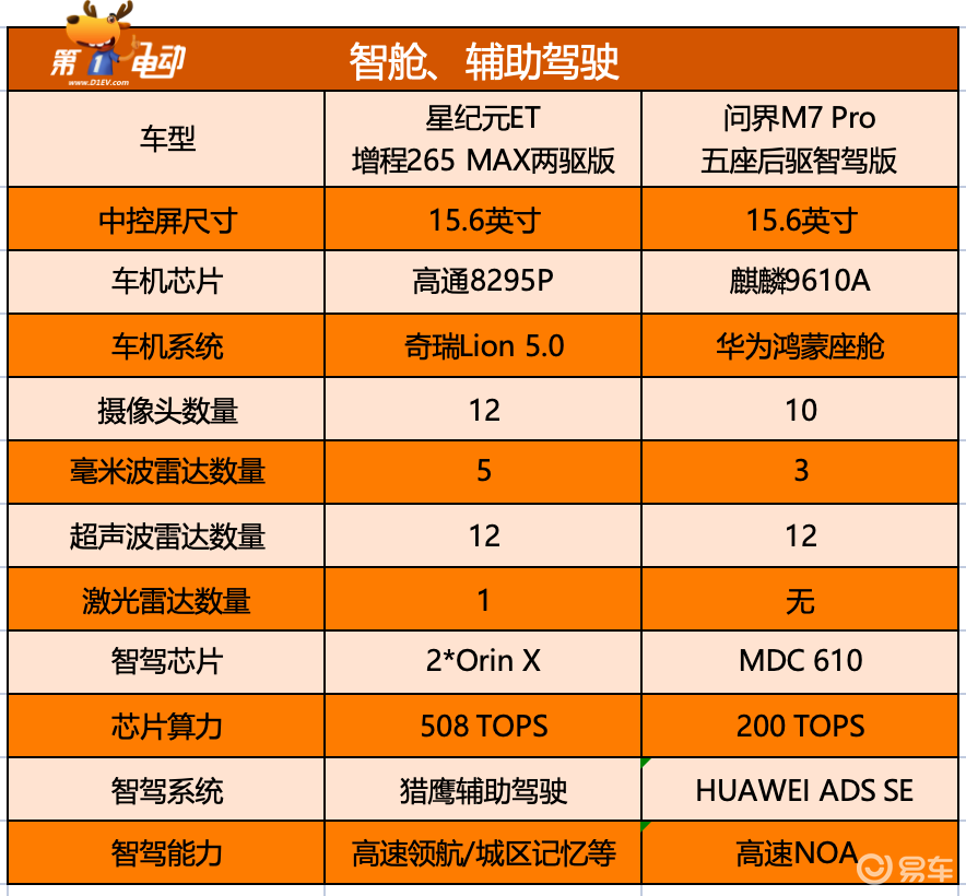 那么接下来,我们针对大家在意的几个买车刚需,具体来盘一盘该怎么选。本次选择的车型,分别是星纪元ET增程265 MAX两驱版和问界M7 Pro五座后驱智驾版。
