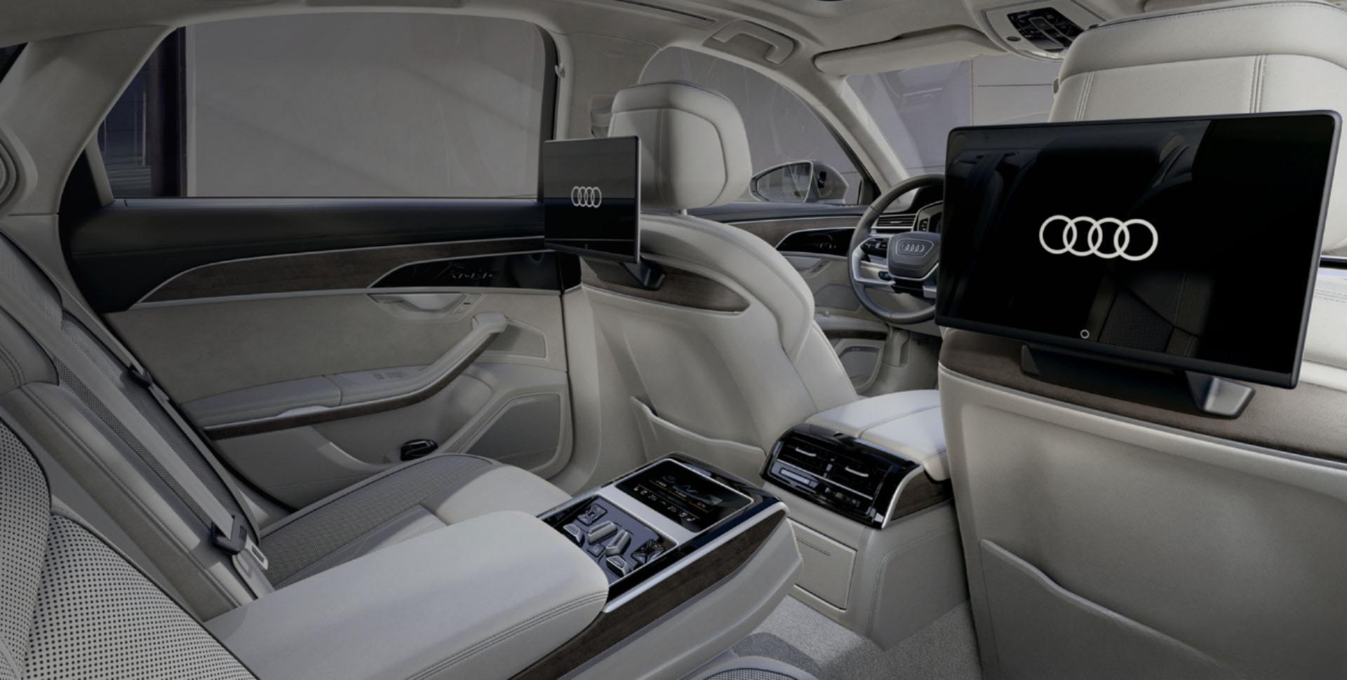奥迪A8L的后排膝部空间达到1085mm,标配电动调节行政座椅,带有足部按摩与冷藏箱功能。四区独立空调配合电动遮阳帘,打造私密舒适的移动空间。车门储物格可容纳1.5L瓶装饮品,后备厢容积达到505L。