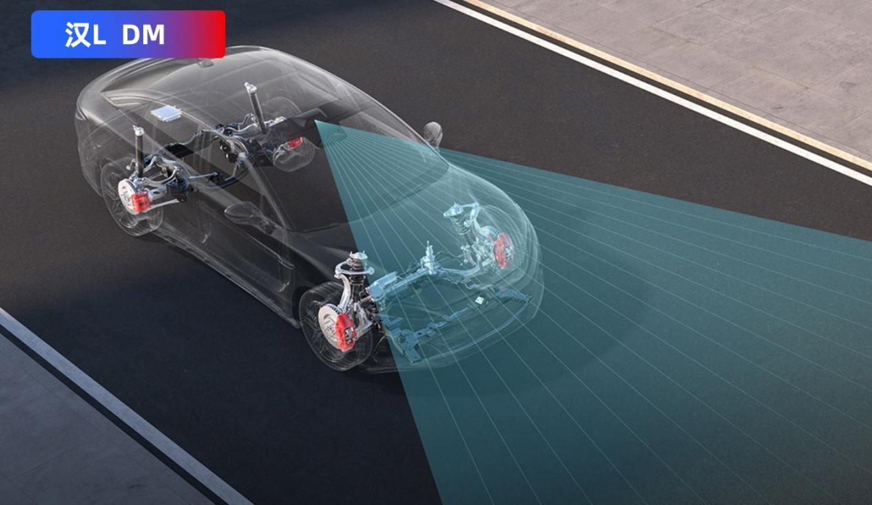 底盘方面,汉L采用前双叉臂+后五连杆悬架,实现更短的转弯半径。搭载云辇-C智能阻尼车身控制系统,通过电动化与智能化绕过传统底盘技术壁垒,提前预扫描路面,调整悬架状态,兼顾运动性与舒适性。