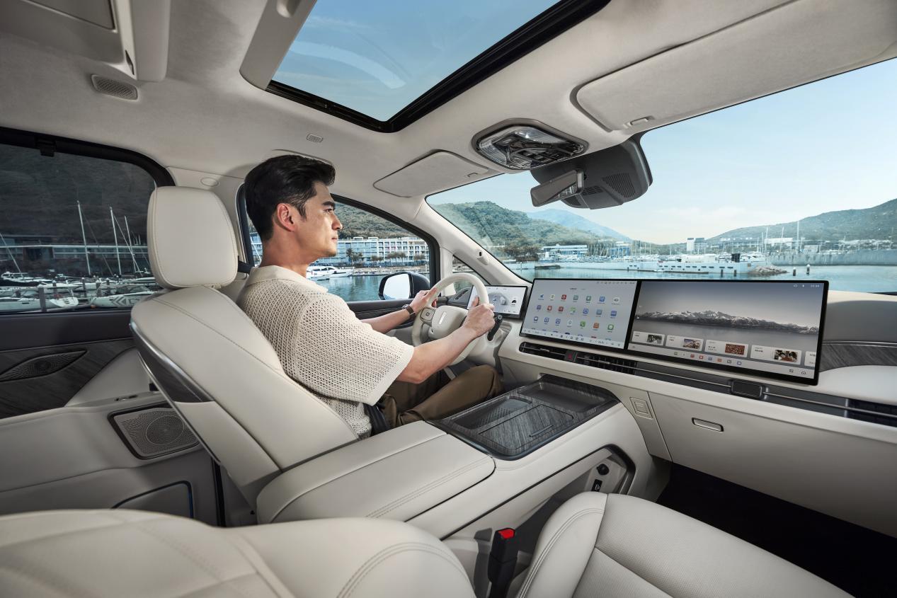 岚图梦想家:鸿蒙座舱+17.3英寸后排吸顶屏,华为生态无缝互联,全家K歌、办公、刷剧全能搞定。