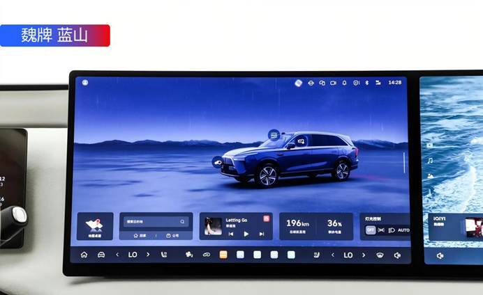 宽敞的空间有了,在旅途中还要有娱乐设备。两款车都配备了副驾驶娱乐屏幕和后排娱乐屏幕,能免去乘客们拿着手机看的不便,同时大屏也更护眼。两款车的副驾驶娱乐屏幕均为2.5k分辨率的15.6英寸屏幕,不同之处在于后排屏幕,深蓝S09配备的是3k分辨率的21.4英寸屏幕,魏牌蓝山屏幕分辨率相同但尺寸较小为17.3英寸。