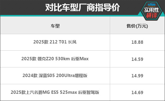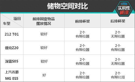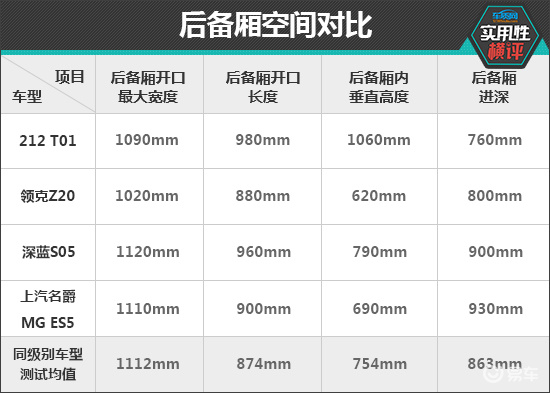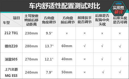 本期参与对比的四款亲民紧凑型SUV在实用性方面表现各有优势,不过从具体测试环节来看,也都存在需要优化之处。如212 T01方向盘不支持前后调节,并且未提供后排中央头枕;领克Z20后备厢空间多项测试数据未达到同级别车型测试均值,仍有提升空间;深蓝S05是左右外后视镜视野范围角度表现不佳;上汽名爵MG ES5则是未提供前雷达以及方向盘上下可调角度较小等问题。不过瑕不掩瑜,综合来看,四款车型的实用性表现均没有出现明显硬伤,消费者可以按需进行选择。