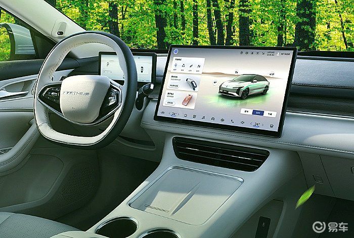 内饰方面,深蓝SL03采用家族式的极简设计风格,10.2英寸全液晶仪表搭配14.6英寸向日葵旋转屏,有着比较强的科技感。座椅同样采用仿皮材质,同时前排座椅还支持加热、通风功能,主驾配备电动调节和记忆功能,后排则提供了中央扶手、后排杯架以及运动风格座椅。