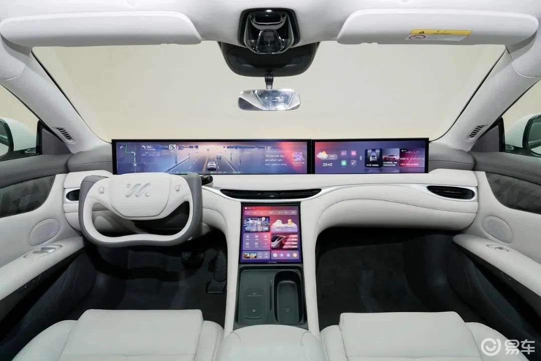 内饰方面,阿维塔12采用极简设计概念,减少物理按钮,只保留常用的必备按键。座舱配备35.4英寸4K全景宽屏,两侧为流媒体后视镜显示屏,中控台还有一块15.6英寸中控屏,搭载HarmonyOS系统和华为高阶智能驾驶解决方案2.0。