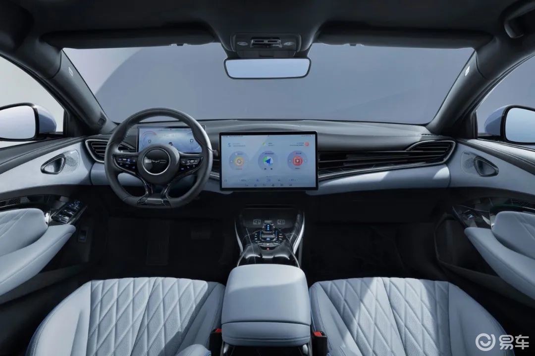 海豹荣耀版的车内延续海洋系列车型的整体布局,水晶换挡杆作为视觉核心,与机械按键共同构成控制中枢,集成了启动、动力模式、驾驶模式选择、空调与音响控制等常用功能。