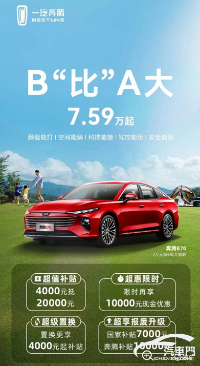 今年4月上市的2024款奔腾B70的售价区间为11.59万元-13.79万元,而日前,官方海报显示,奔腾B70已降至7.59万元起售。值得一提的是,奔腾B70、凯美瑞以及不久前上市的比亚迪秦L都定位于中型车,比亚迪秦L的起售价为9.98万元,这个价格无疑给同级竞品造成了巨大压力。或许正因如此,才使奔腾B70决心踏入了7万级市场。