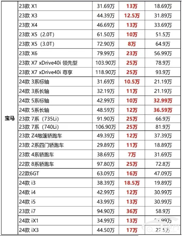 新能源车的降幅比燃油车还大,比如官方指导价35.39万元起的宝马i3车型,如今已开始5折促销,价格直接“腰斩”,仅需18万就能拿下。今年1月刚刚发布的全新宝马i5,经销商也给出了6万元不等的报价优惠。