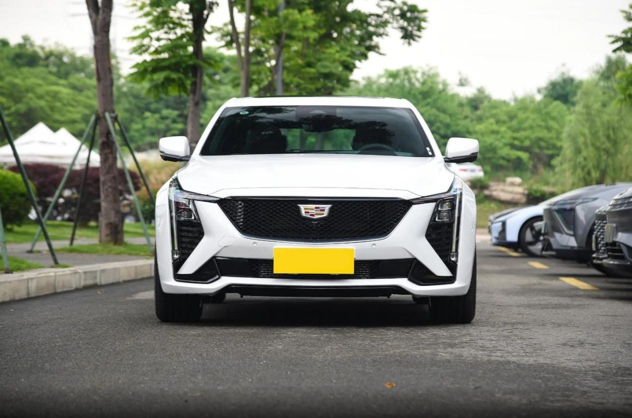 凯迪拉克CT5同样增加了品牌传承的钻石切割工艺,车身边角带有锋利的线面组合,前脸被组件划分出了四块格栅区域,中部的盾形格栅采用熏黑菱网设计,两侧大灯呈现纵向獠牙状设计,为前脸增加了一些凶狠感。车侧则采用溜背化的车顶延伸,黑色的窗线在尾部通过提拉式的鹰嘴夹角抬高了后轮拱的视觉重心,腰身的线条相对不突出,但在车门下部增加了平行的上扬裙线装饰,熏黑的轮毂也提升了战斗属性。尾门顶部的边角向着中轴进行汇聚,挤压出微翘的鸭尾边角,同样纵向的尾灯贴合肩部布局,底部则配有黑色组件和双出排气,在运动属性的彰显上同样不弱。