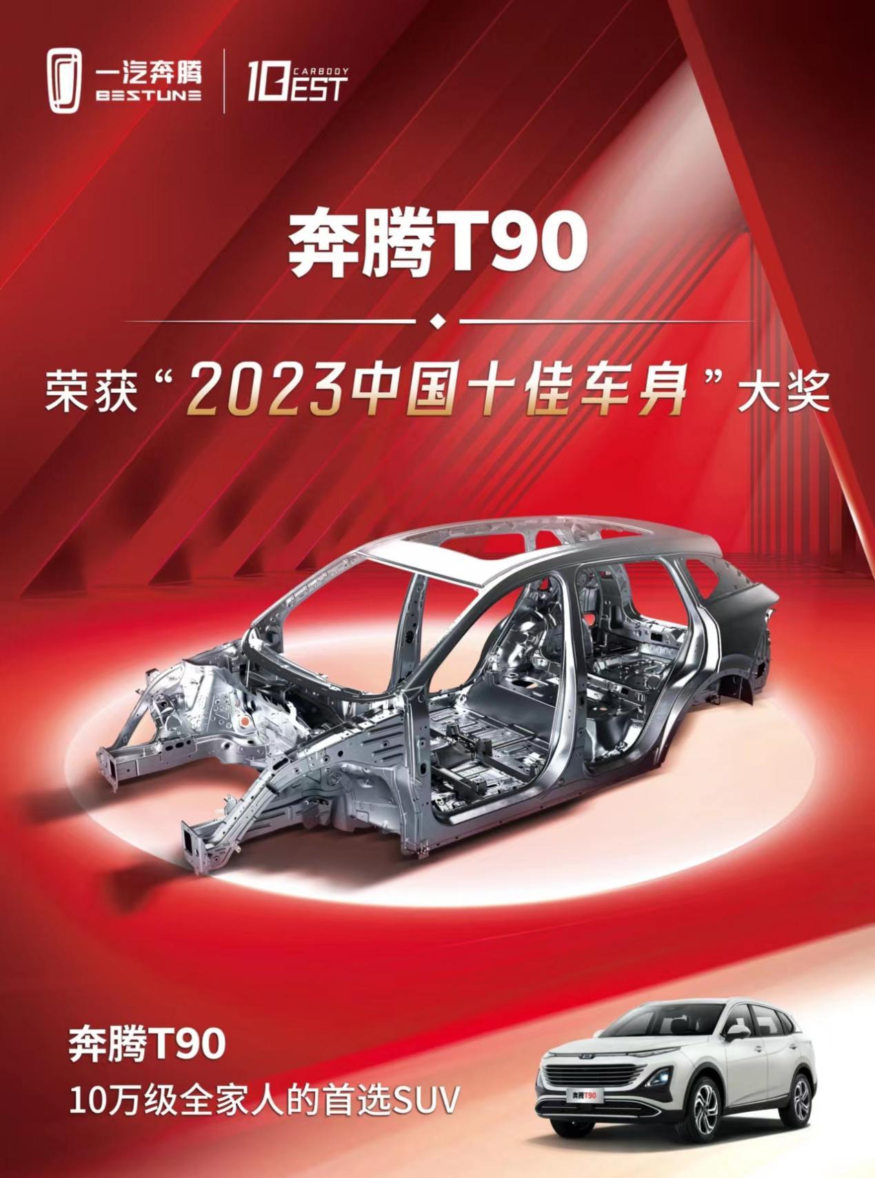值得一提的是,在中汽中心举行的的碰撞测试中,奔腾T90斩获“2023中国十佳车身”大奖,可以与50万级别的问界M9相媲美。