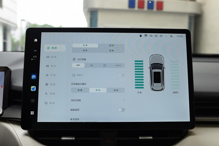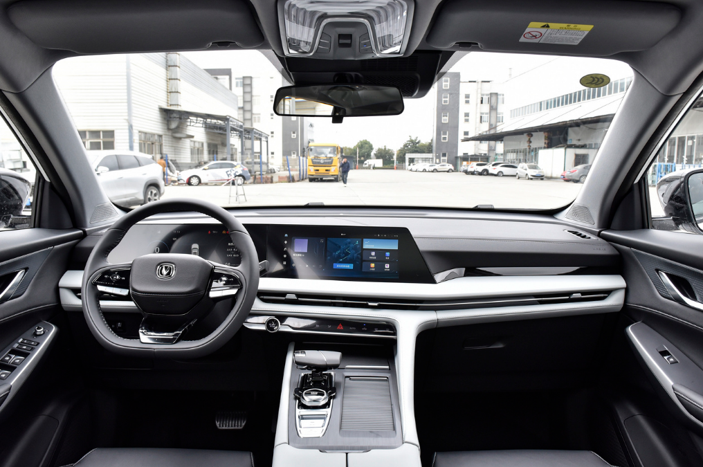 相比之下,长安CS75 PLUS在内饰设计上要更加保守,这款车搭载了大尺寸连体式大屏,同时也保留了一部分物理按键和传统的档把,这还是传统燃油车的设计手法。不过在实际体验上,两款车并没有什么显著的差别,部分老用户甚至更加喜欢这种传统的设计。