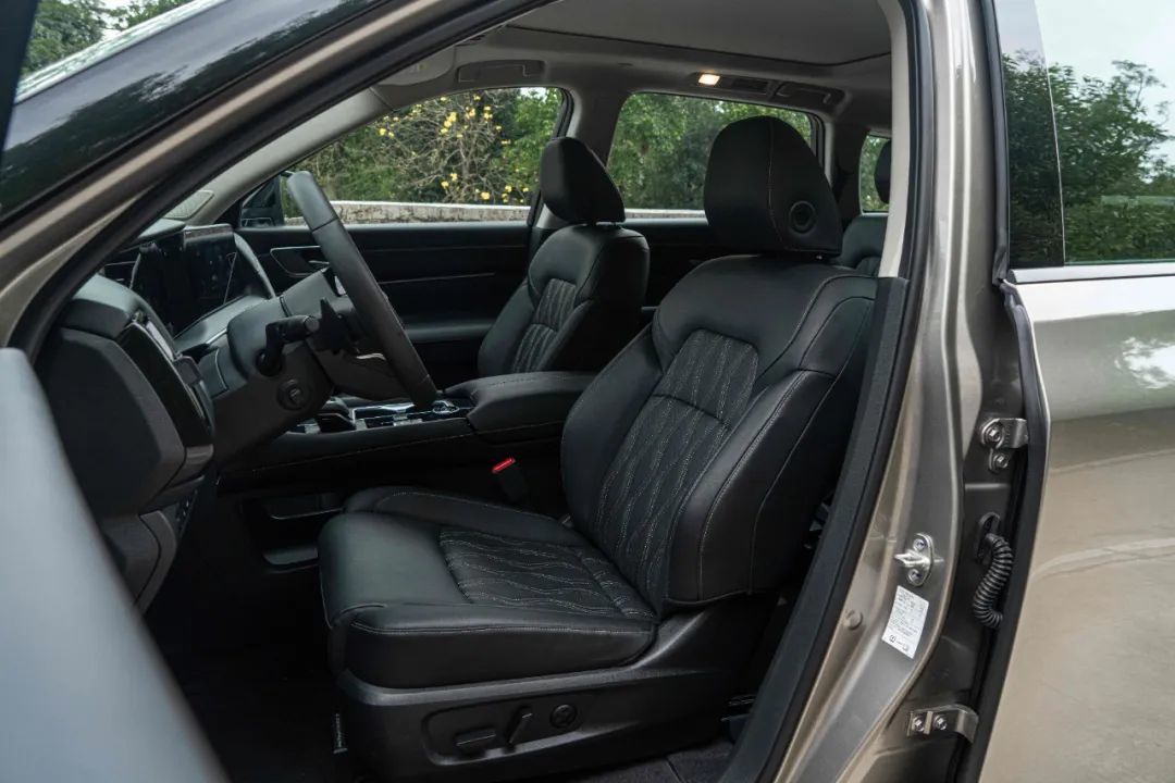 一些贴心细节探陆的顶配车型的前排座椅带有通风、加热功能,二排座椅带有加热功能,但除了入门版车型以外前排座椅加热功能是标配。这里需要指出的是,探陆的座椅加热面积是根据国人的养生习惯进行了调整,加热面积扩大至0.35m²,覆盖臀部、腰部。第一排驾驶席与副驾驶席,可远程控制提前加热,缓解疲劳;至于座椅通风则采用的是豪华车品牌常用的吸风系统,将空气从座椅表面吸入,对比传统吹风式,吸风式噪音更小、散热效率更高、对女性家人和父母也更友好。