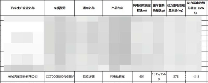 欧拉好猫新车型已完成申报,新车搭载蜂巢传动提供的126kW驱动电机,参数较现款舒享型和豪华型更强(电机功率105kW),动力电池组容量降至45.9kWh,CLTC工况续航401km。