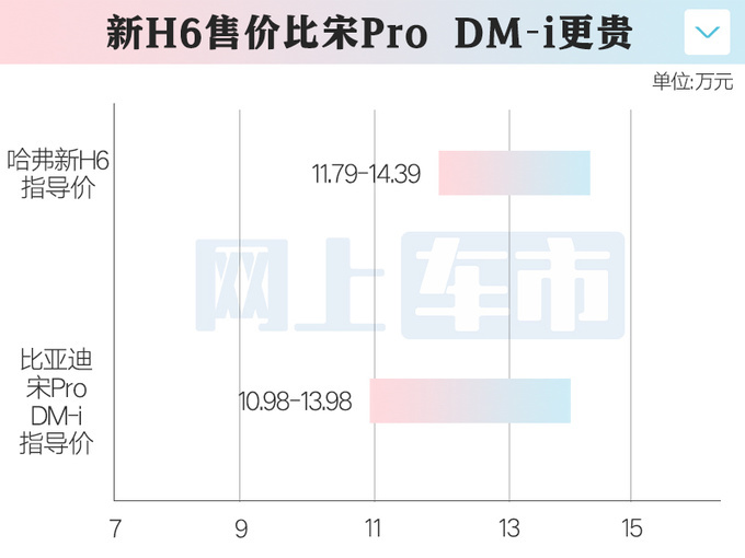 新哈弗H6官方售价11.79-14.39万元,起售价上调2,000元,比宋Pro DM-i更贵。宋Pro DM-i搭载插电混动系统,可油可电,百公里馈电油耗5.3L,用车成本更低。H6 1.5T的百公里综合油耗7.13L,2.0T四驱油耗达到8.1L/100km。