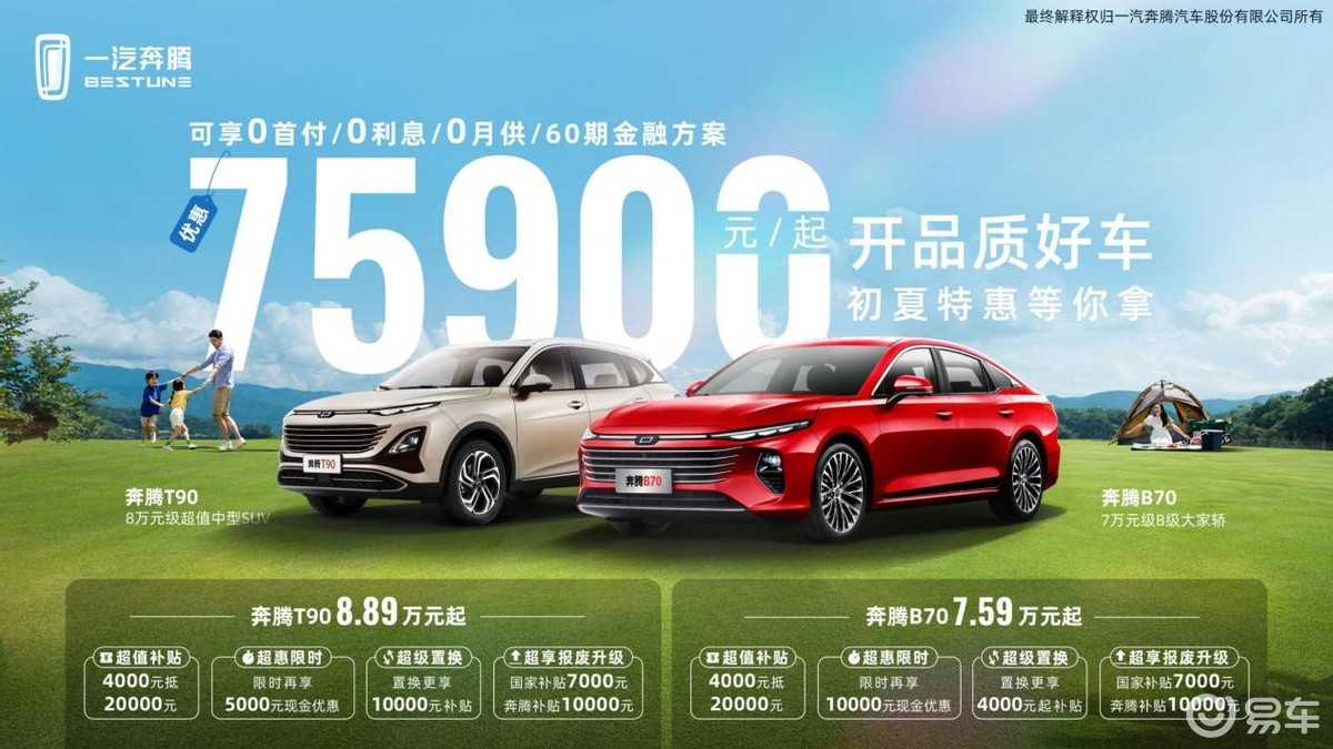 2024年汽车市场相比于2023年是更卷了,从卷配置、卷品质、卷情怀到卷价格,新出来的新车价格是越来越优惠,广大用户群体也是对新车在不减配置和品质的情况下,对更实惠的价格是更青睐。在这样的大趋势下,有着高性价比的国民大家轿奔腾B70自然而然也成了用户关注的焦点之一了。那在今年6月,一汽奔腾更是推出了很给力的优惠政策,直接将中型车的起步价给拉到了7万级。现奔腾B70仅需7.59万起,成为了目前市面上最便宜的中型车之一,那奔腾B70有啥亮点呢?跟同级别的自主品牌或合资品牌它又有哪些优势呢?