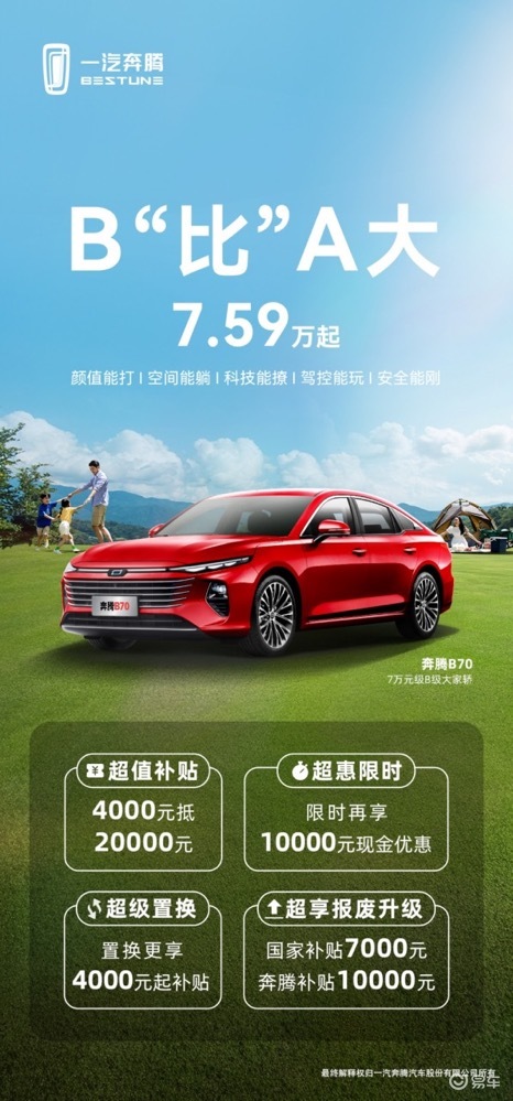 7.59万元起可以买中型车?奔腾B70的限时优惠能奏效吗