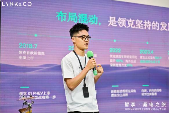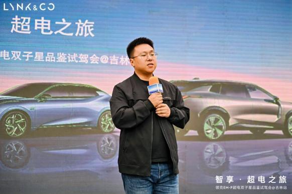本次品鉴试驾会中,领克汽车东北战区副总监 邵凤海登台致辞,与大家分享了领克品牌在新能源汽车领域的傲人成绩和美好展望,并在活动开启前,为大家详细解读了领克EM-P超电双子星的的领先科技与颠覆实力。