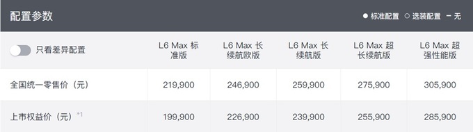 比起售价更高的Max超长续航版,差异主要存在于高压平台、电机功率以及续航里程,后者采用了准900V平台、电机功率提升至408马力,CLTC续航达到850公里,但其他配置几乎一致。