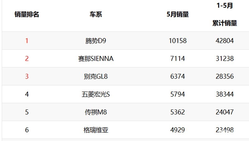 相比老款车型来说,2024款丰田赛那的起售价降低了1万元,使得该车的市场竞争力得到了一定的提升。5月份丰田赛那的单月销量升至7114台,不仅超过了传祺M8还是反超别克GL8。今年1-5月丰田赛那累计销量31238台,同样超过传祺M8和别克GL8,大有与腾势D9争夺年度销冠之势头。