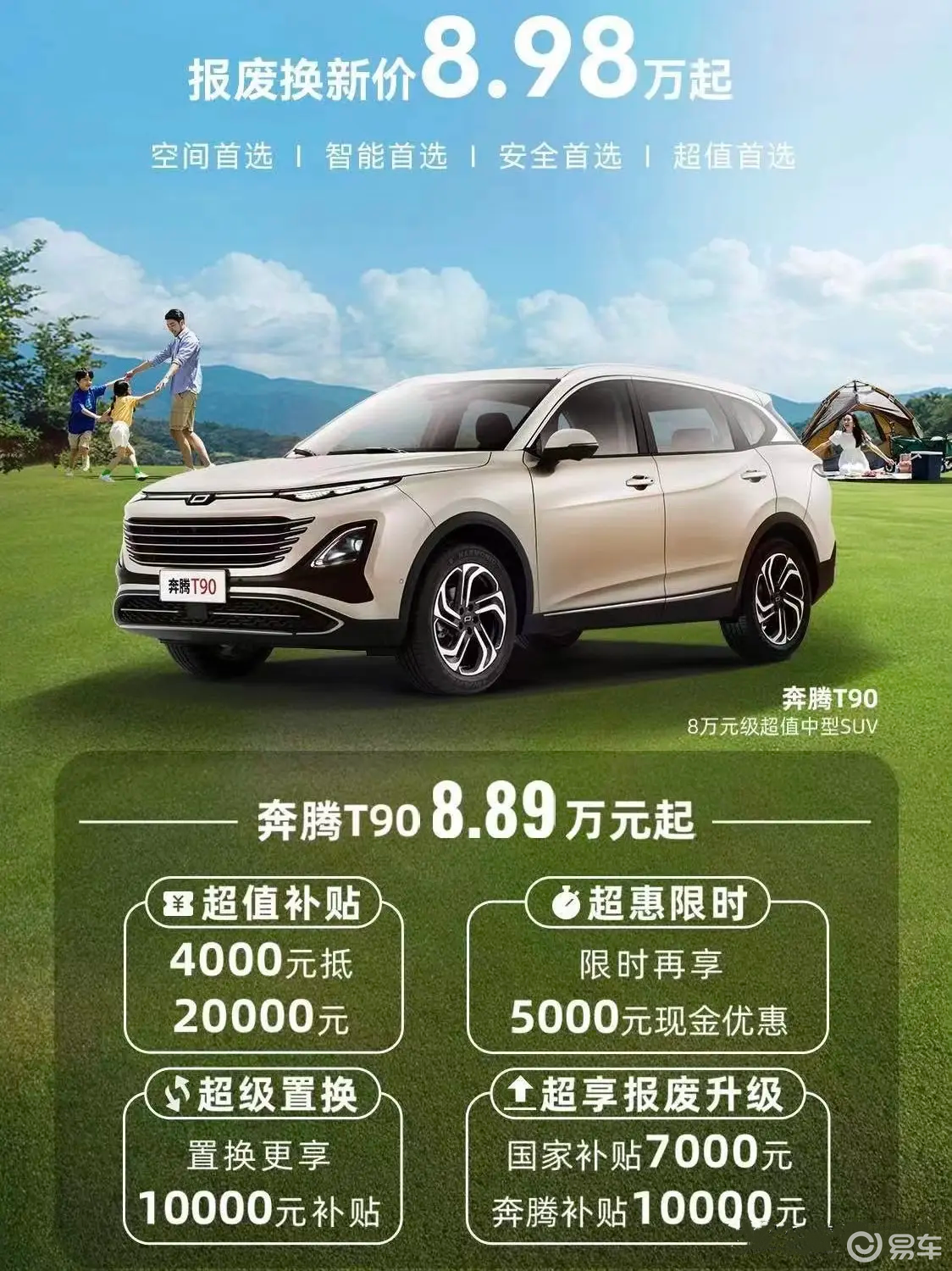 在活动期间,购买奔腾T90的消费者可以享受多重优惠福利,综合优惠后奔腾T90起售价拉到了8.98万,进一步提升了车辆的性价比。