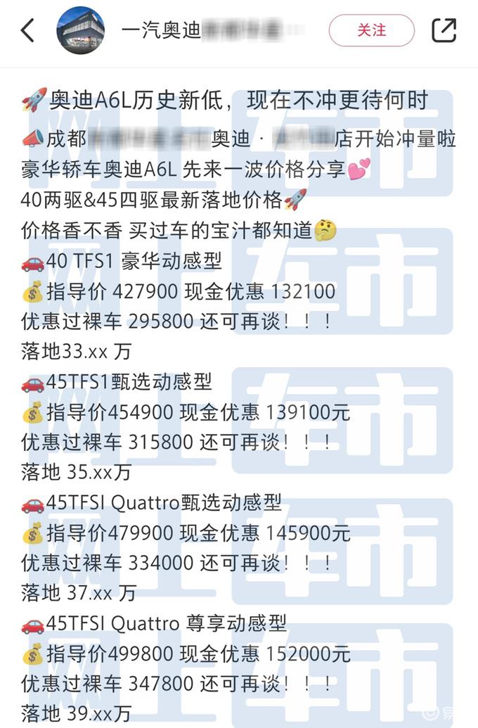 (原标题:奥迪4S店:新A6L致雅停产!配置再升级,现款7折甩卖)