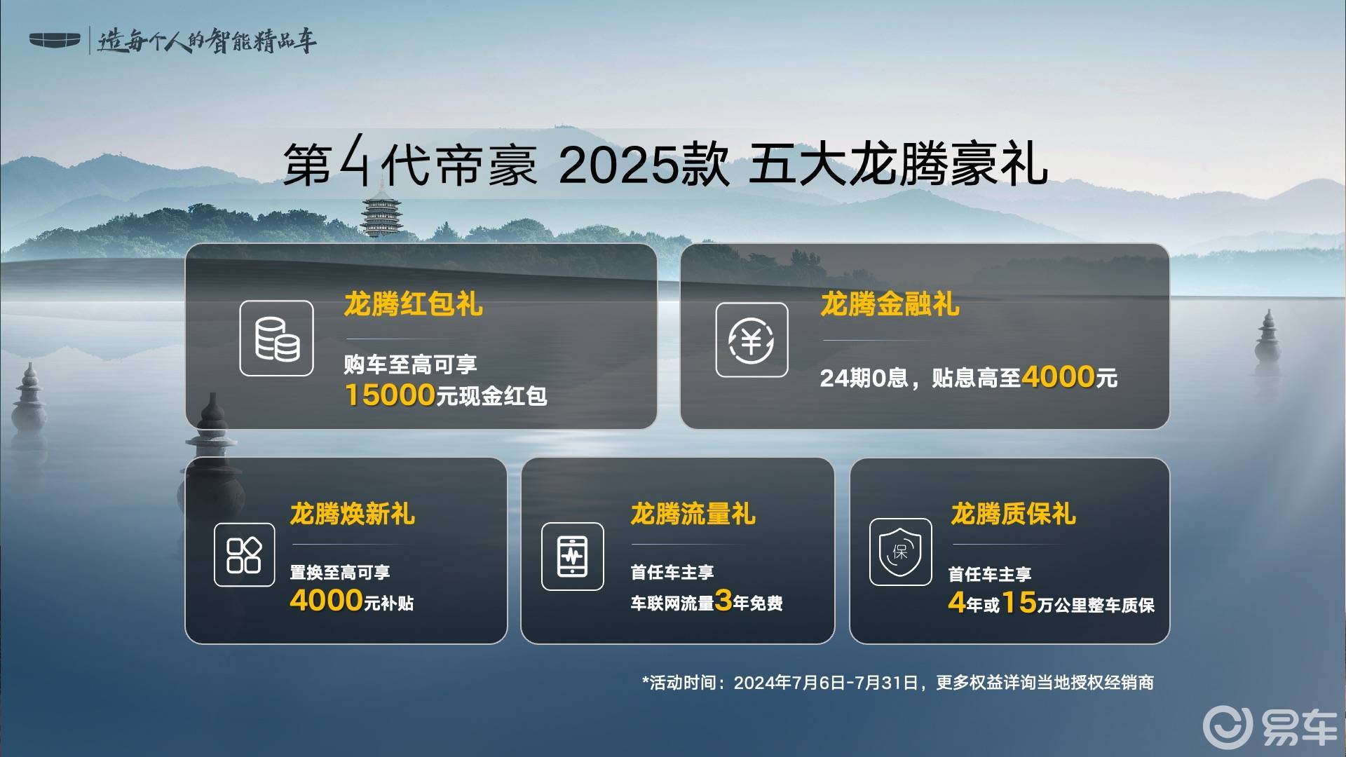 (原标题:“国民神车”第4代帝豪2025款龙腾狂欢价5.59万元起)
