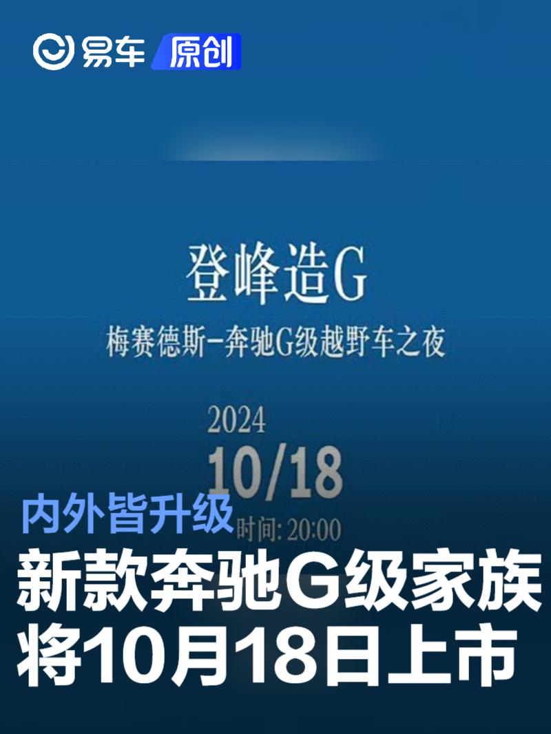 易车讯 我们从奔驰官方获悉,新款奔驰G级家族将于10月18日正式上市。新款奔驰G级家族曾于今年北京车展上正式亮相,包含新款G 500、新款G 63以及纯电动G 580三款车型。新车在保留经典设计的同时加入了诸多全新设计元素,此外在内饰配置及科技感上也进行了升级。