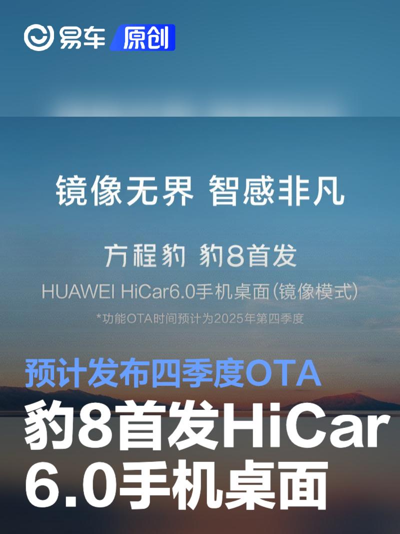 (原标题:方程豹豹8首发华为HiCar,6.0手机桌面,预计四季度OTA)