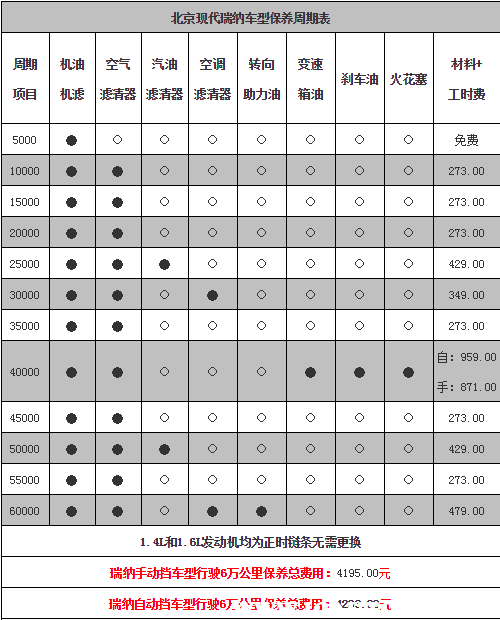 现代瑞纳5万公里保养费用,瑞纳五万公里保养项目
