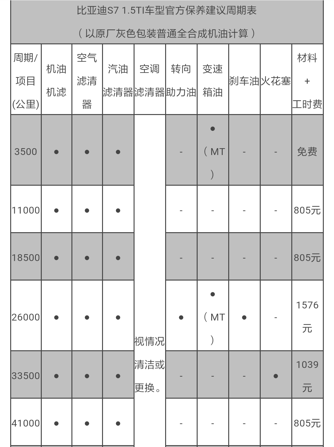 比亚迪s7保养周期,比亚迪s7保养费用明细表