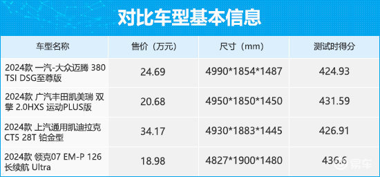通过以上各项对比不难发现,本次选取的四款热门中型车在商品性方面均交出了令人满意的答卷。其中,广汽丰田凯美瑞和领克07 EM-P在静态车内振动的表现可圈可点;凯迪拉克CT5则在车内噪声表现出色;一汽-大众迈腾可开启天窗面积最大,采光和通风表现相对较好。综合来看,四款车在商品性方面均不存在明显的短板,消费者可根据自身需求选购。