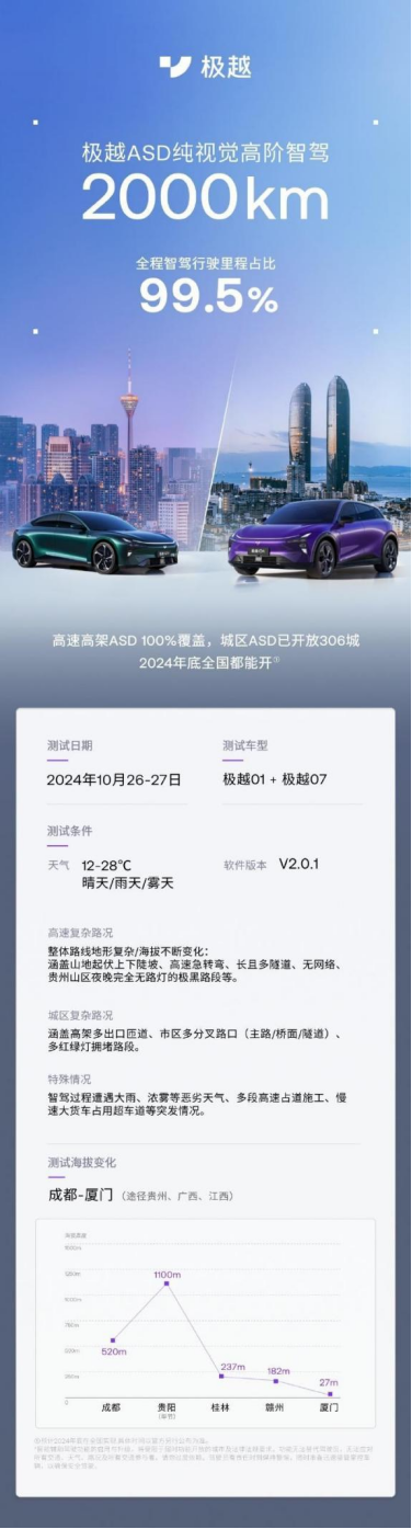 不知大家关注没有?作为极越汽车首席执行官的夏一平以直播的方式开展了24小时2000km智驾挑战的活动,从10月27日下午4点驾驶极越07从成都出发,经过25小时37分钟完成了总行程2000km的挑战,涵盖的地形复杂,其中智驾行驶里程占比高达99.5%;而且过程中载重520kg,全程开空调,模拟了日常用车的场景。可以说,成功展示了极越07强大的智驾能力和稳定性。那么作为“后起之秀”的极越07为何会如此出色呢?它与同级且热度不断的小米SU7和领克Z10相比,谁又更具优势呢?