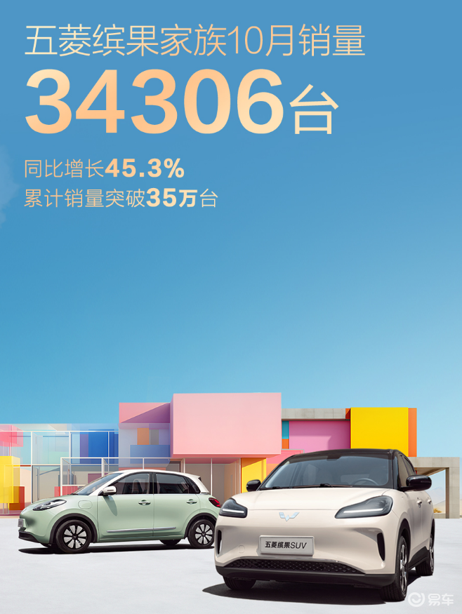 预算10万,能在新能源赛道买到优质纯电小车吗?答案当然是能,眼下咱就能给你找出不止一台。比如五菱缤果家族的缤果SUV,还有吉利家族新成员吉利星愿,都是热门之选。尤其是五菱缤果家族,10月家族销量直接干到了34306台,累计销量已突破35万台。