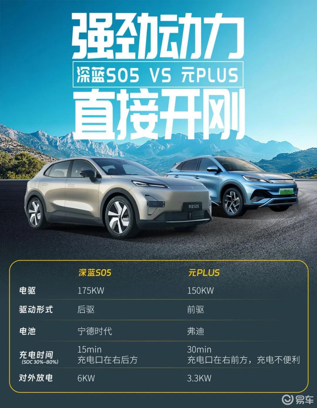 说起15万级纯电SUV你最先想到的会是谁?想必很多朋友脑海中首先浮现的会是比亚迪元PLUS吧,毕竟它在这一级别中称得上是“元老级”车型了。然而,当下新能源车型的迭代升级速度可谓一日千里,比如刚上市不久的深蓝S05在发布会上就直接将目标瞄准了元PLUS 。那么,我们在面对这两款车时究竟该如何选择呢?下面就来比比看。