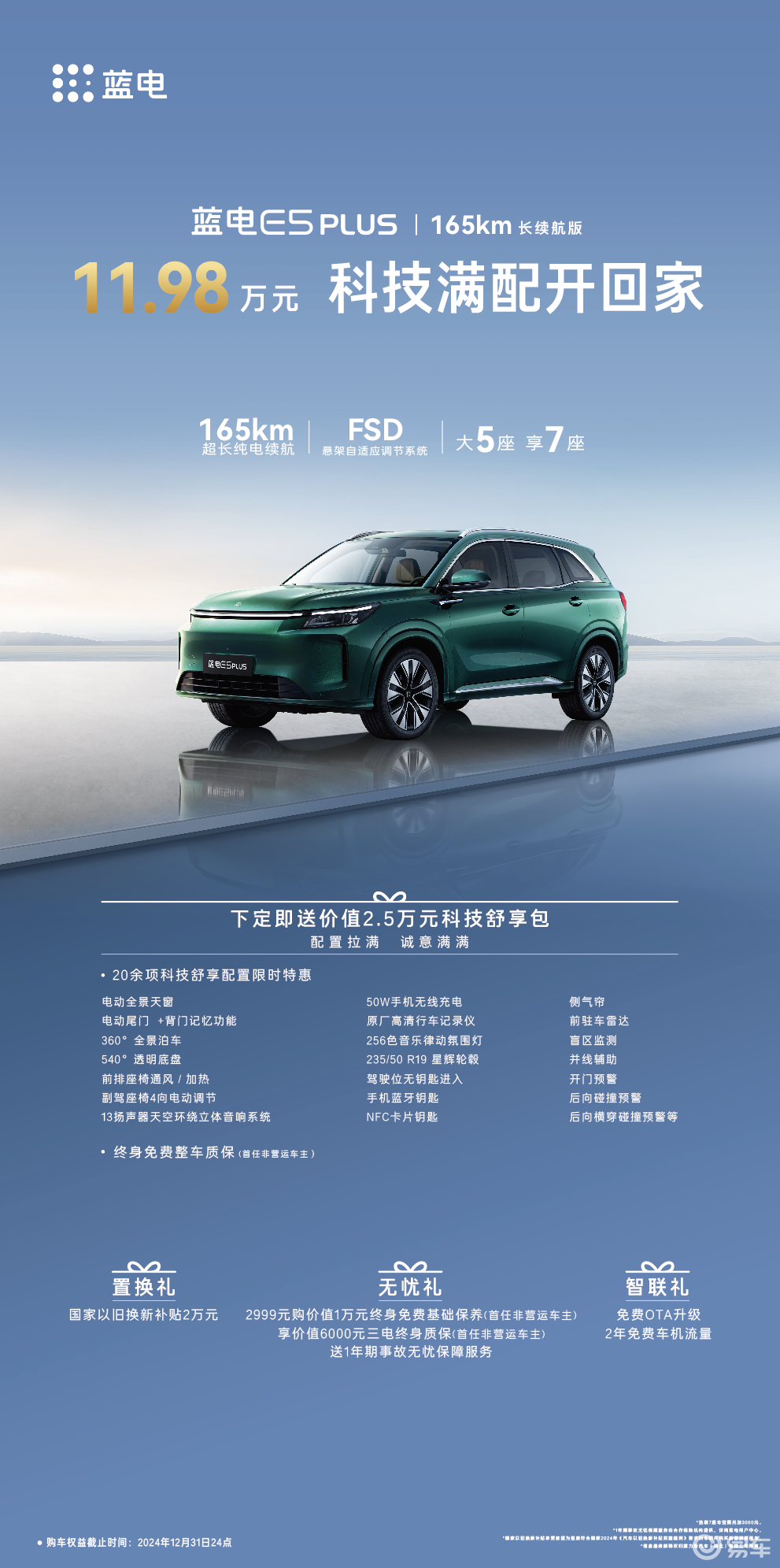 自11月10日全面开启交付以来,蓝电E5 PLUS凭借其强大的产品实力和对用户需求的精准把握,迅速赢得了市场的热烈反响,累计交付量已突破5000台。这款车型不仅成为了10万级插混市场中的一匹黑马,更以其卓越的性能、丰富的配置以及贴心的服务,树立了同级市场的新标杆。以下,我们将从购车优惠、黄金配置、严苛品控与荣誉认证、以及质价比四个方面,详细解读蓝电E5 PLUS的独特魅力。