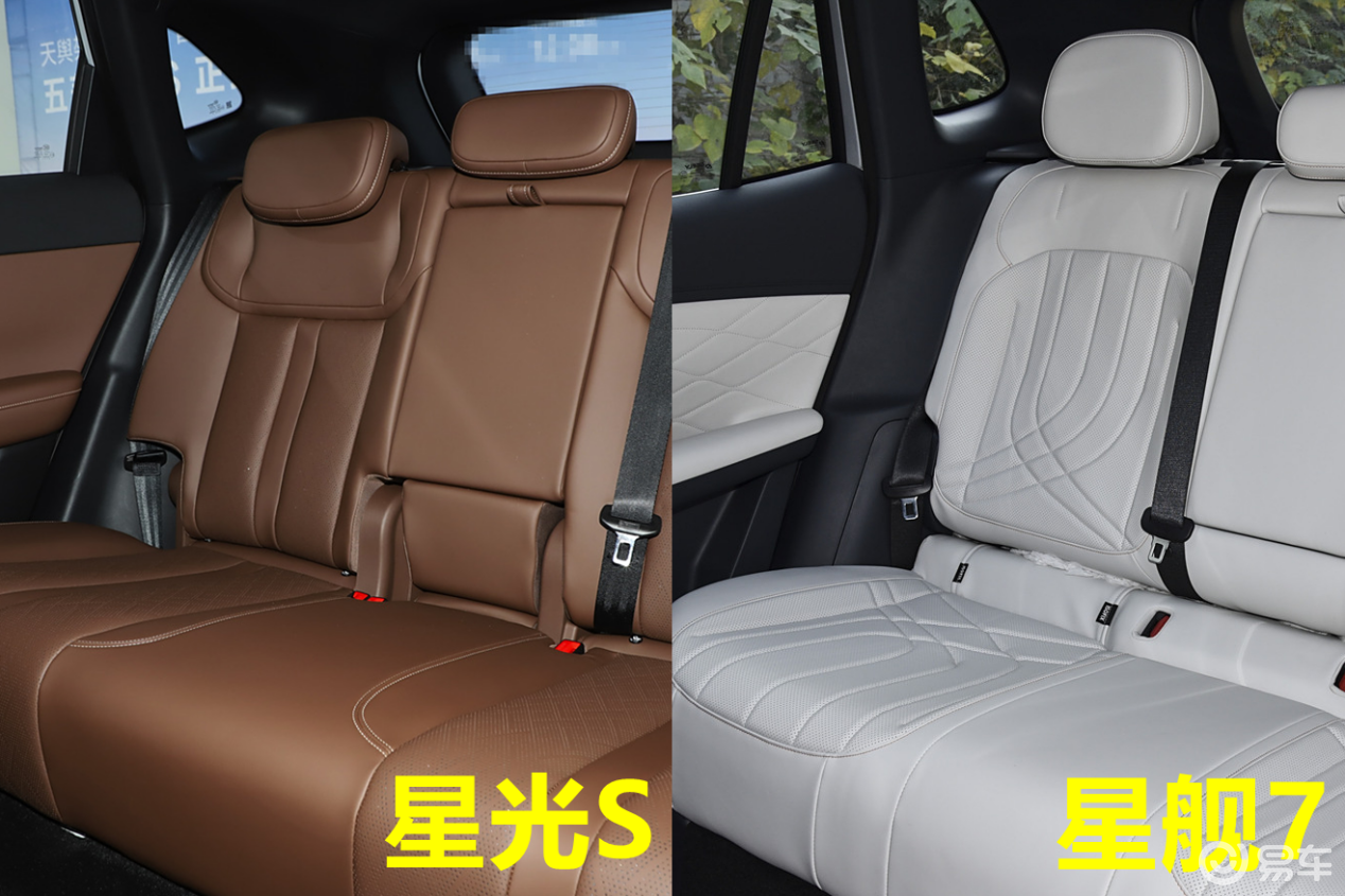星光S,在拥有更长轴距的前提下,带来了可调角度的后排座椅靠背设计。相较于无法调整靠背角度的星舰7,星光S可以坐直也可以躺平,在长途出行的时候能以更丰富的乘坐姿势,让乘客更舒适。